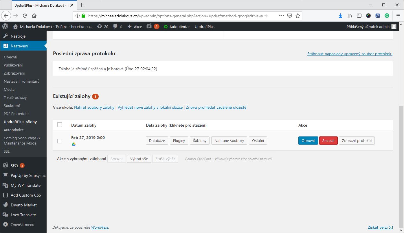 With low cost web hosting, data backup is not a standard . It is necessary to count on a possible loss of data and prefer to back up the pages yourself. It is a good idea to have a copy of the website stored in case of major problems. WordPress pages can be backed up manually and automatically. So how do I back up the content of a website without spending a single CZK?