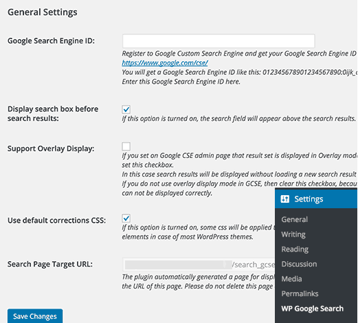 1. Visit "Settings"to setup the "WP Google Search"plugin.