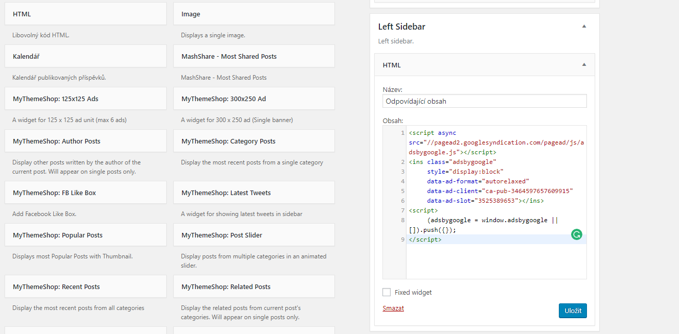 - Create a new HTML widget and paste the ad code into it.